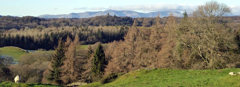 The Parish of Crosthwaite and Lyth border lies 5 miles west of Kendal, 5 miles north of Grange-over-Sands and 3 miles south of Bowness-on-Windermere. The M6 motorway is 5 miles from the parish. Manchester Airport is 82 miles to the south. The equivalent distances from Crosthwaite village are 5½ miles to Kendal, 11 miles to Grange, 6 miles to Bowness and 11 miles to the M6.